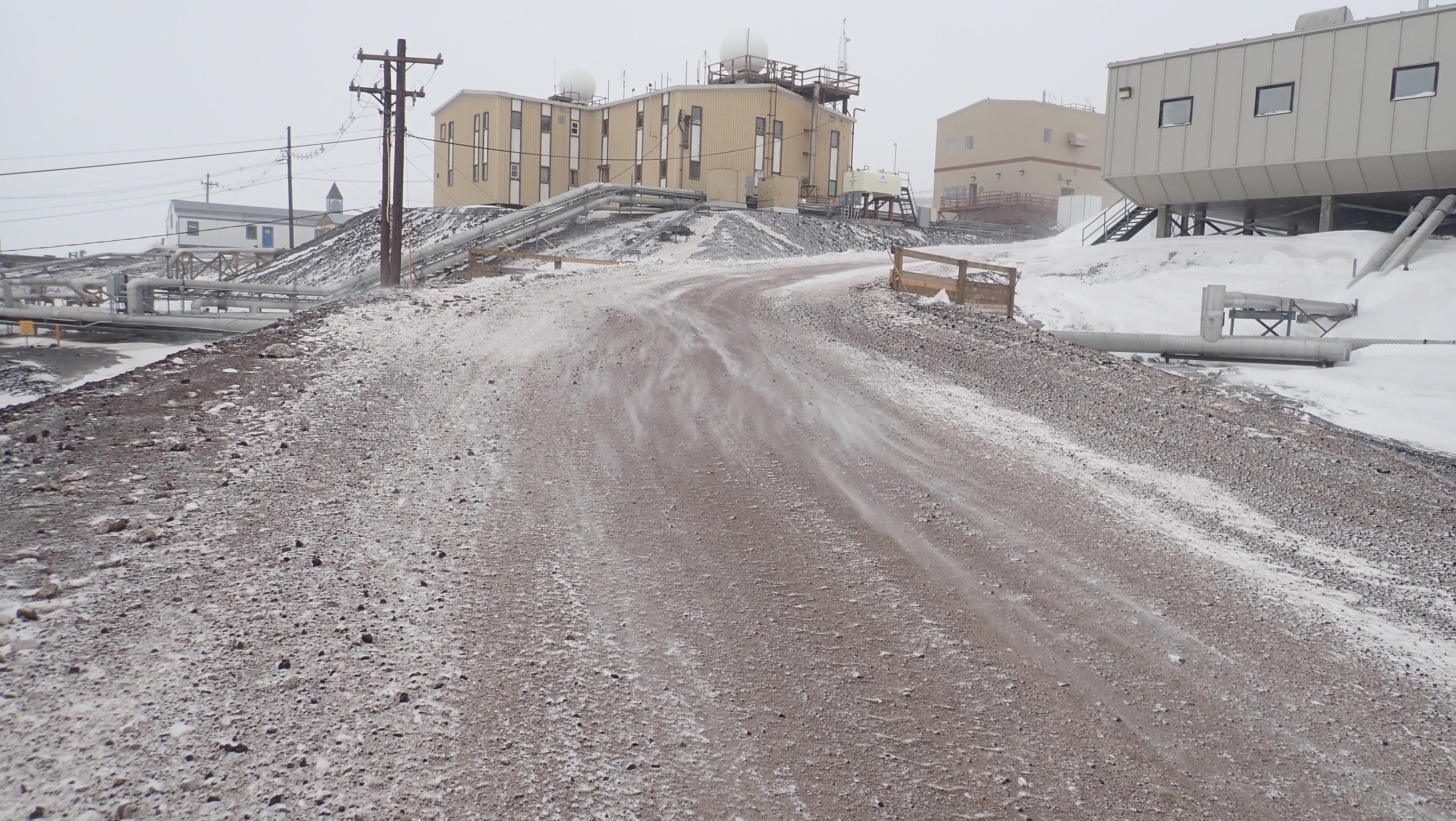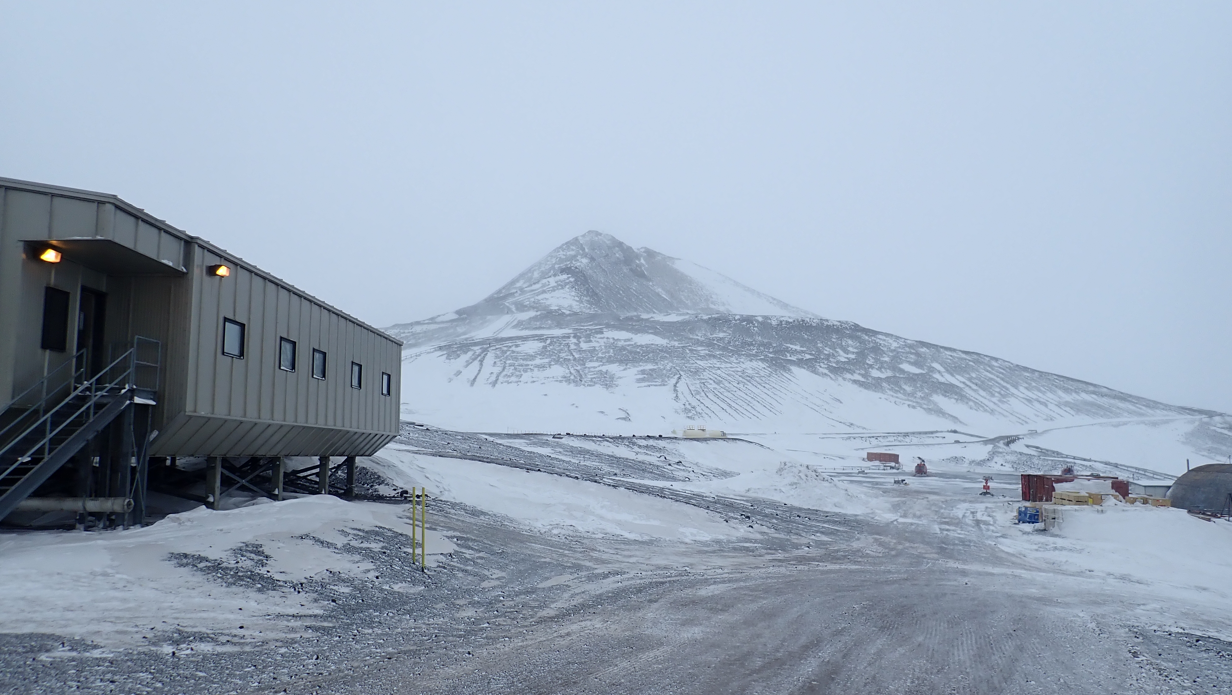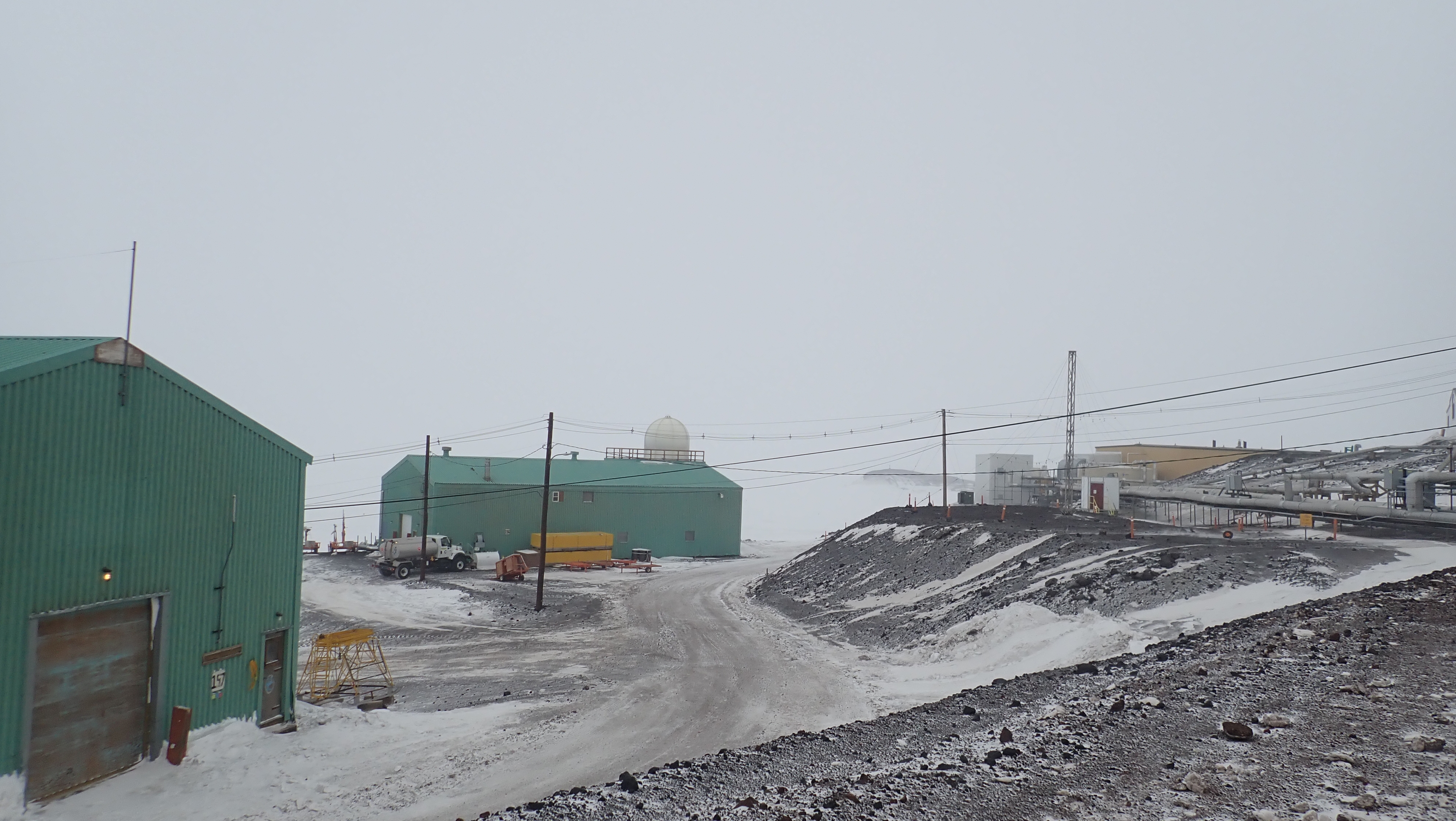 We had whiteout conditions today at McMurdo.  The camera was able to see better than me.  When I looked outside all I could see was the guard rail and almost nothing past that.    This is still a Condition 2 storm.    Condition 1 is worse that this.