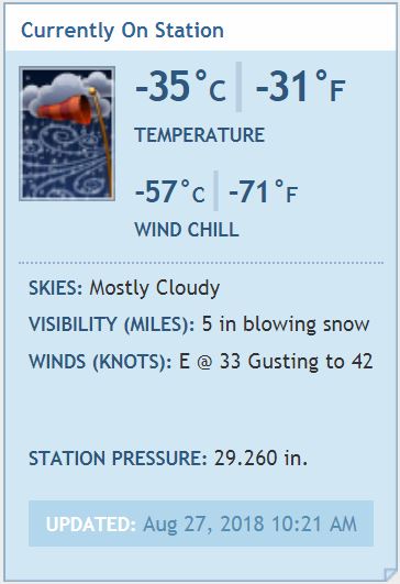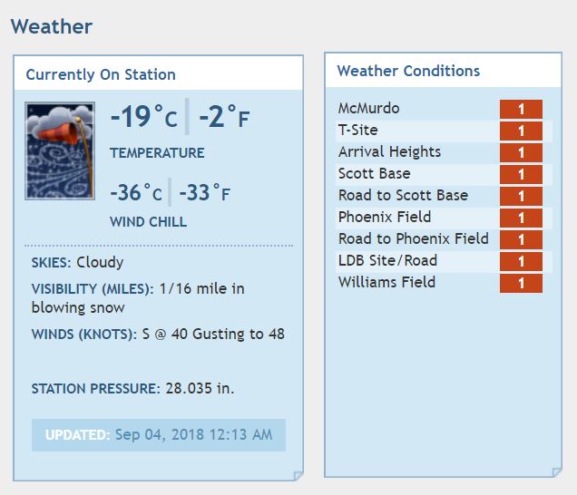 Just a quick video shot from my dorm looking out during the Condition 1 weather. There is no movement allowed outside during this time unless approved by the NSF Station Manager.